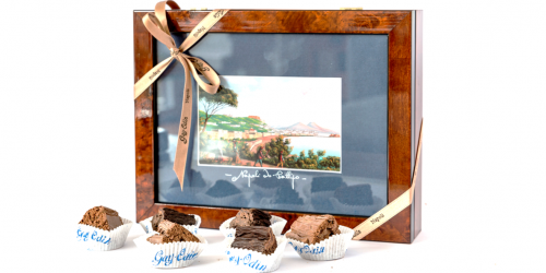 Una cioccolateria con una selezione di oltre ottanta varietà di cioccolatini assortiti, ripieni. giandujotti e gelatine alla frutta, frutto di una tradizione risalente al 1915.
