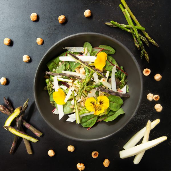 Ingredienti: Asparagi, asparagi bianchi, asparagi viola, citronette, nocciole,olio evo, bietola rossa di insalata e sale. Allergeni: Nocciole. Conservazione: In frigo e consumare entro 3 giorni.