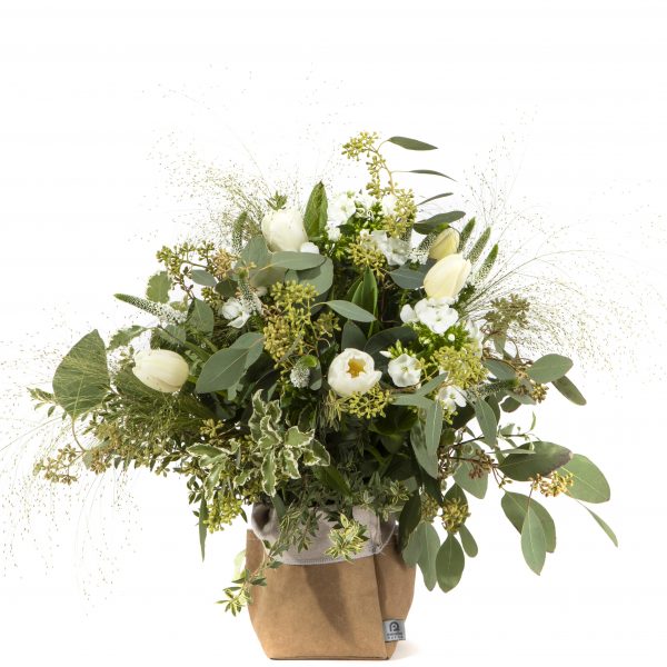 La foto è a scopo illustrativo, la tipologia dei fiori e confezionamento potrebbe variare secondo stagionalità e disponibilità del negozio. Il bouquet si presenta senza contenitore.