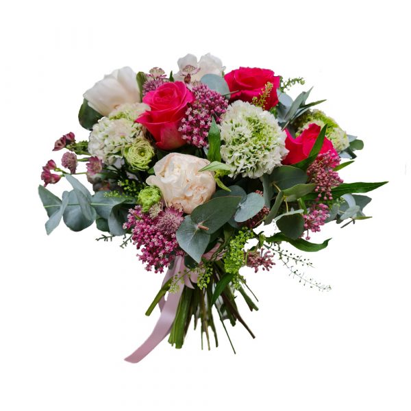 Composizione: Ranuncoli, peonie, rose e altri fiori misti sui toni del bianco verde e fucsia Modalità di conservazione: I fiori recisi devono essere conservati lontani da fonti di calore e per farli durare più a lungo è consigliato cambiare l’acqua ogni giorno.