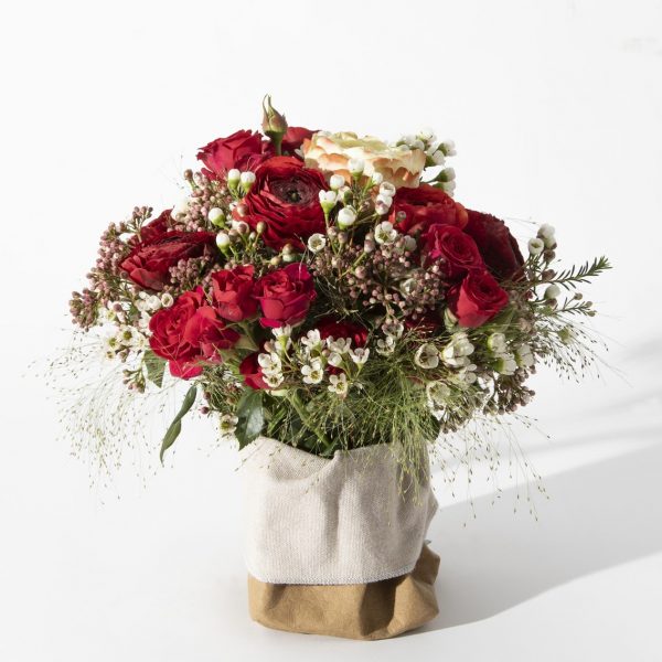 La foto è a scopo illustrativo, la tipologia dei fiori e confezionamento potrebbe variare secondo stagionalità e disponibilità del negozio. Il bouquet si presenta senza contenitore.