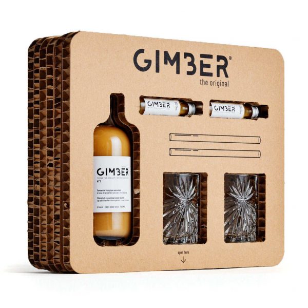 La confezione regalo GIMBER è un dono ricco di zenzero biologico di alta qualità. Contiene GIMBER, due bicchieri esclusivi GIMBER, due shot e due cannucce. Un delizioso concentrato di zenzero da agricoltura biologica con aggiunta di succo di limone, zucchero di canna e spezie.