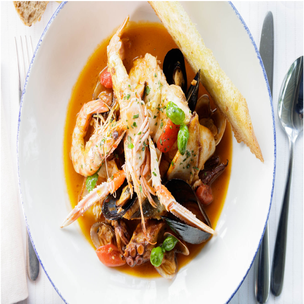 Guazzetto saporito di pesce "povero" sfilettato, crostacei e molluschi sono gli elementi che compongono la zuppa di pesce firmata dall'Osteria del Mare.