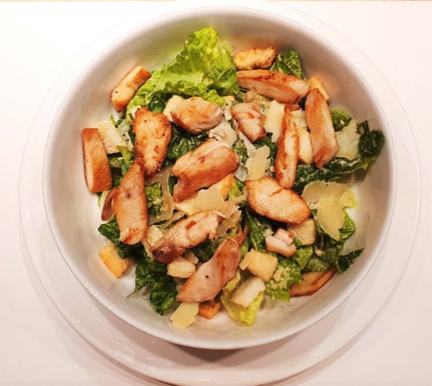 Chicken Caesar Salad Ingredienti: Pollo alla piastra, lattuga, scaglie di grana, crostini di pane, Caesar condita con dressing GSTF Caesar (grana e acciughe). Allergeni: 1, 3, 4, 7, 12.
