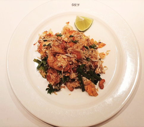 Ingredienti: Riso saltato con uovo, gamberi*, fagiolini*, piselli*, germogli di soia, cipollotto, peperoncino e coriandolo fresco, zenzero, anacardi tostati, succo di lime, pestato di peperoncino, soy sauce.