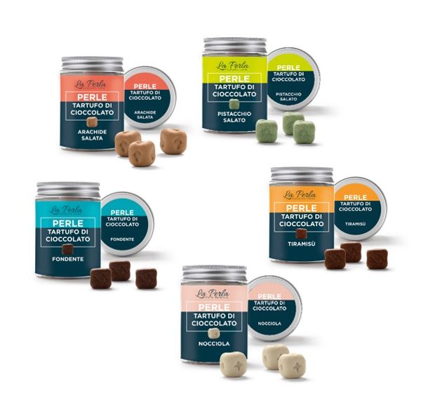Il maxi piacere dei tartufi di cioccolato proposti da La Perla in un mini formato. Tanti gusti diversi da scegliere!