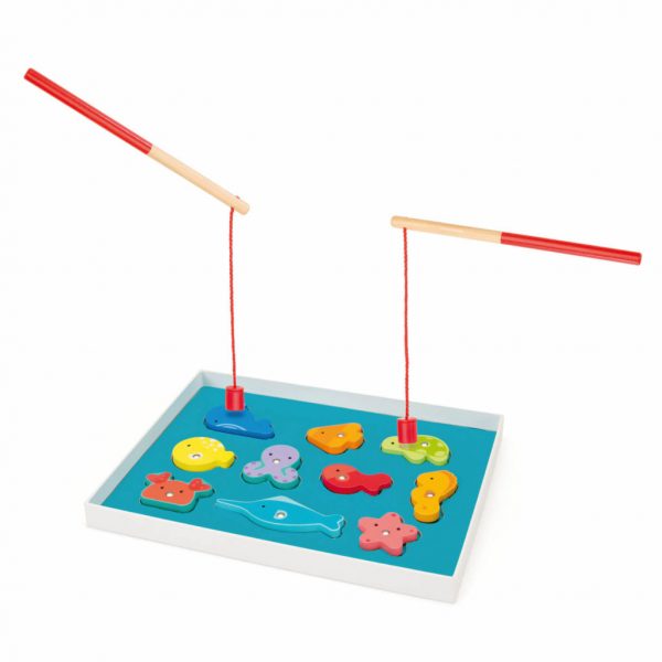 Il classico gioco della pesca senza i classici pesci! Pescare le dieci sagome marine è facile grazie al buon magnete incastonato nelle canne. Affina il coordinamento motorio. In legno FSC. Da 2 anni.