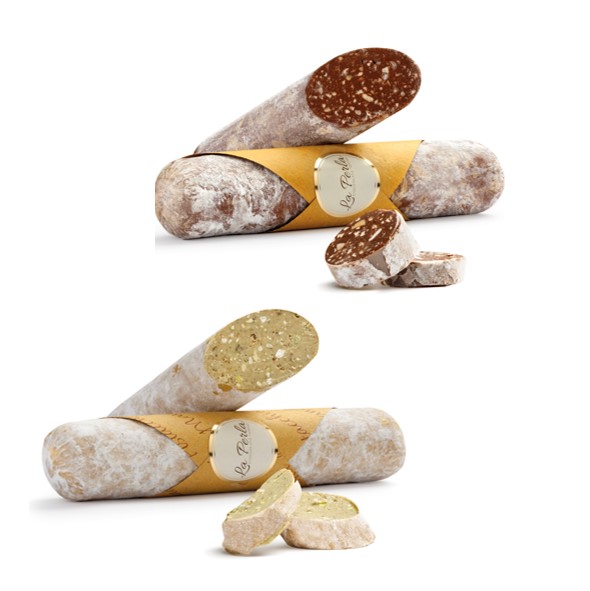 Descrizione: 2 Salami di tartufo al cioccolato in due varianti.