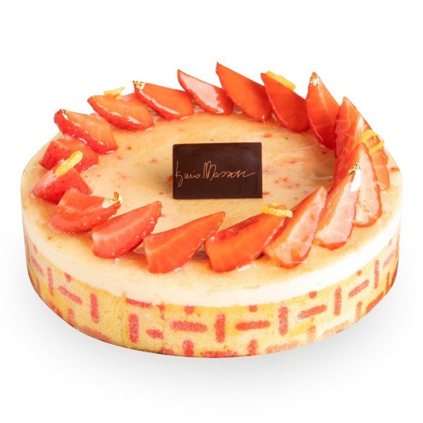 Ingredienti: pan di spagna: farina di grano tenero tipo 00, zucchero, uovo, miele, pasta di limone, vaniglia in polvere. bagna alla fragola: fragoline, zucchero, succo di limone, acqua. crema al limone: uova, zucchero, scorza di limone, burro, succo di limone, acqua, limone candito: (bucce di limone, zucchero, sciroppo di glucosio) pan di spagna decorato: mandorle, uova, zucchero, farina di grano tenero tipo 00, burro. fragoline, gelatina di origine suina.