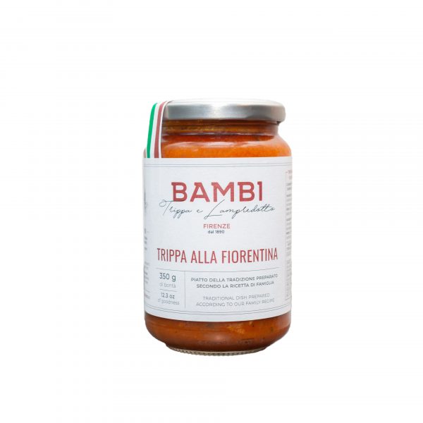 Ingredienti: Trippa Bovina, cipolla, concentrato di pomodoro, olio EVO, acqua, pomodoro, vino (contiene SOLFITI), sedano, carote, aglio, prezzemolo, sale e pepe. Allergeni: Solfiti, sedano. Modalità di rinvenimento: Rigenerare in padella, a bagnomaria o in microonde a 750 watt. Peso: 350g