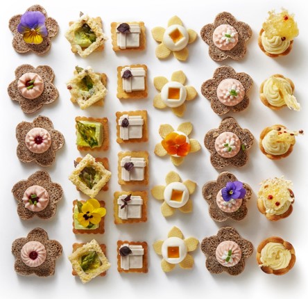 L’uso di erbe e fiori eduli coinvolge il fruitore in un'esperienza per gli occhi oltre che per il palato, rendendo il momento unico e di grande piacevolezza.