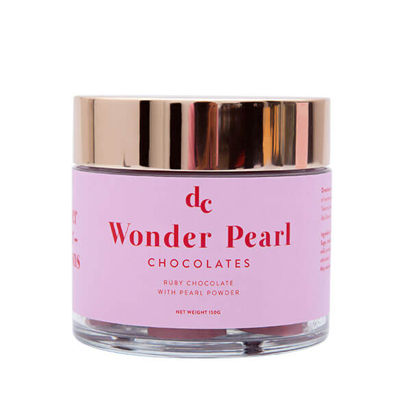 I cioccolatini sono fatti con fave di cacao rosa "Ruby" mixate alla polvere di perle.